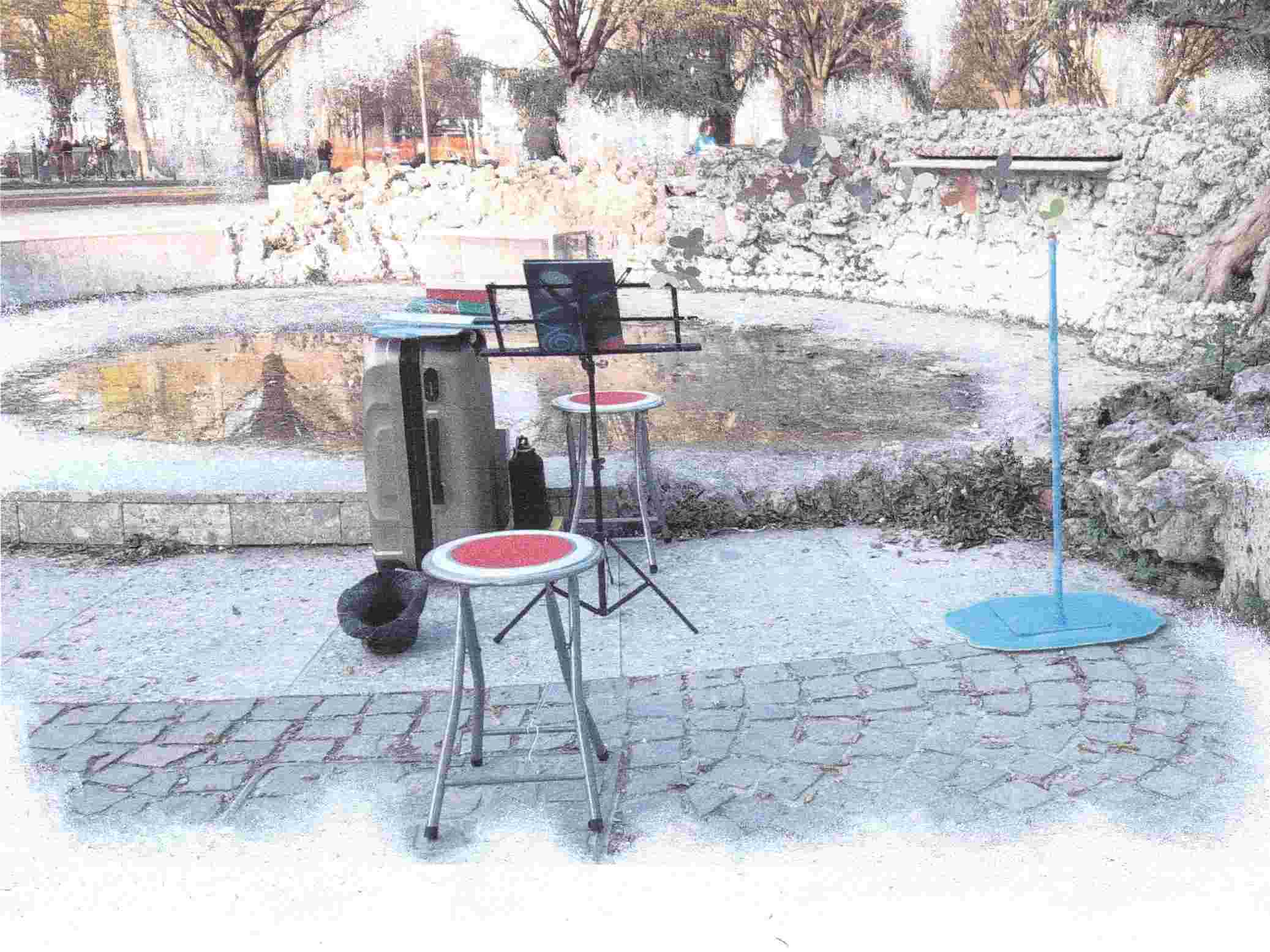 ![]() | Dal "C'è una poesia..." del 2021, ho iniziato a togliere qualche oggetto della prima forma, struttura, con cui iniziai nel 2017.Nel 2021 furono le scarpe e nel 2022 il campanello che tanto ha accompagnato il ritmo della forma.Quest'anno non ci sarà il pannello che "spiega" cos'è il "C'è una poesia..."..... e ancora per chi vorrà e sceglierà di ricevere una poesia dovrà semplicemente sedersi sullo sgabello posto davanti a me. |